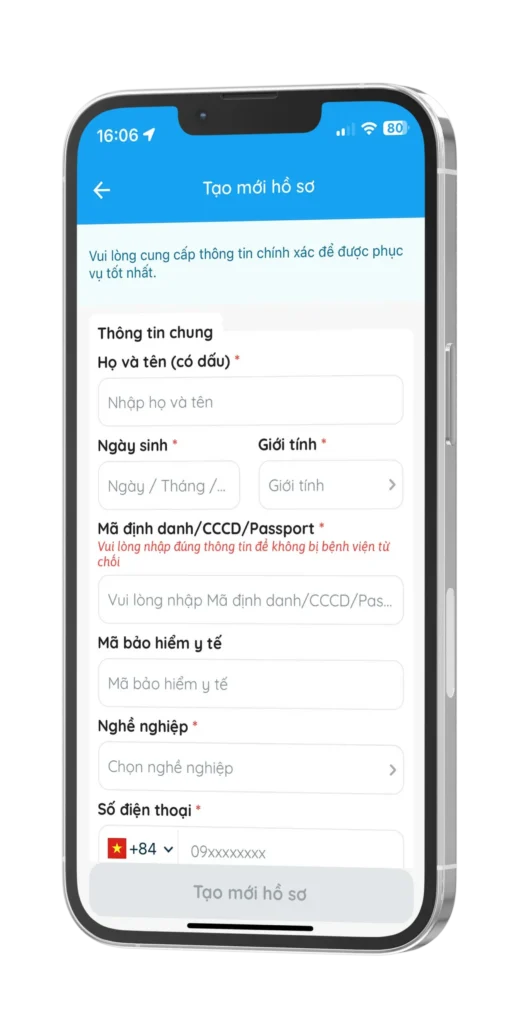 • Tạo hồ sơ bệnh nhân