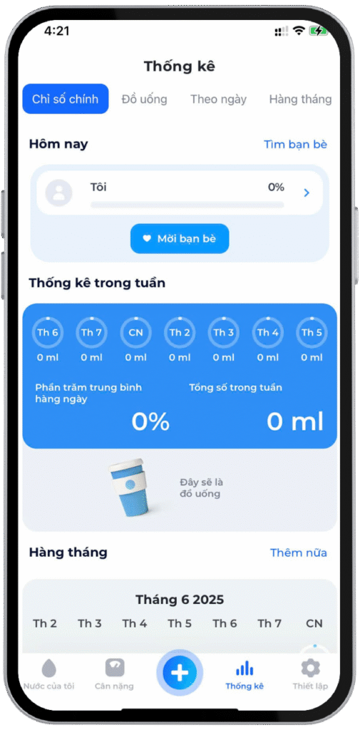 - Theo dõi lượng nước qua biểu đồ thống kê trực quan.