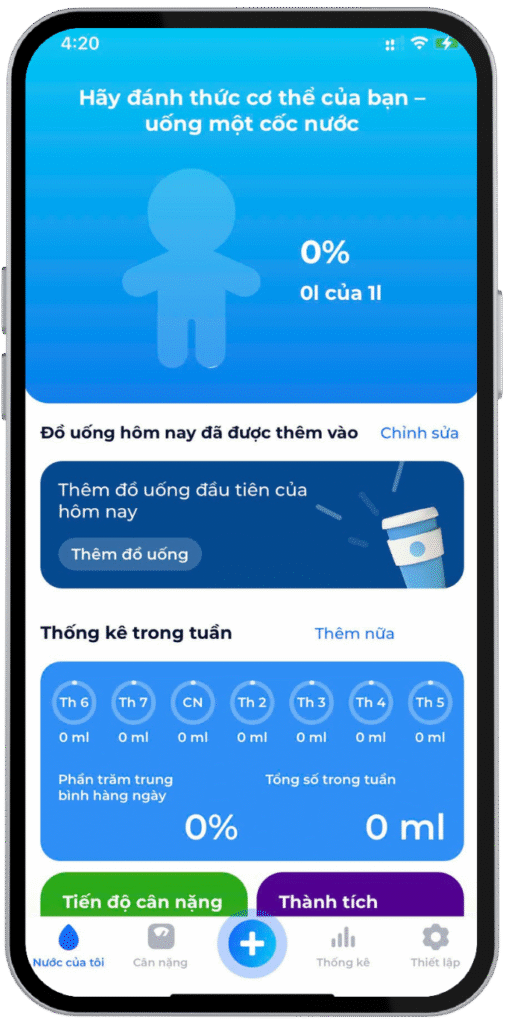 - Tính toán lượng nước cần uống mỗi ngày dựa trên thể trạng và thói quen.